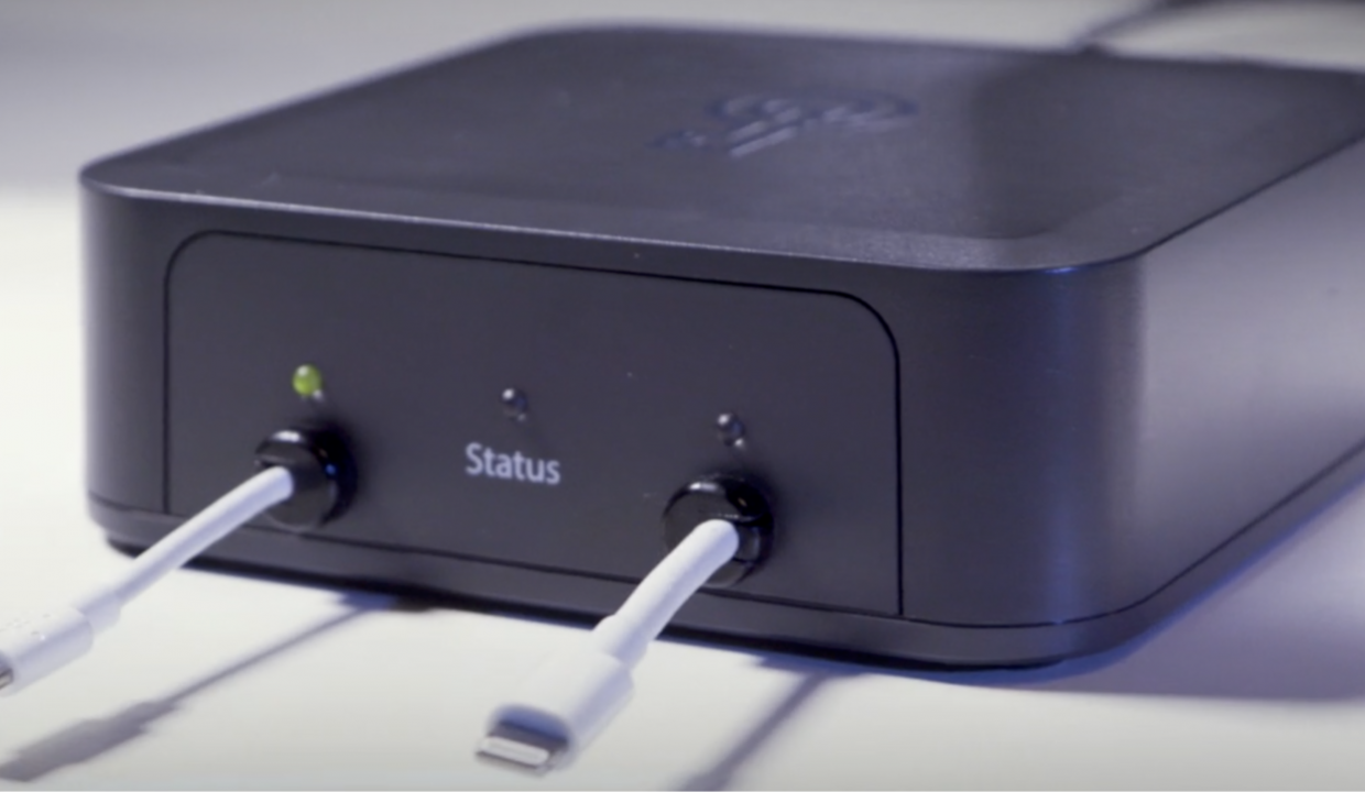 На торце устройства размером 10х10х4 см – два Lightning-кабеля и три светодиодных индикатора. Одновременно к GrayKey можно подключить два iPhone.