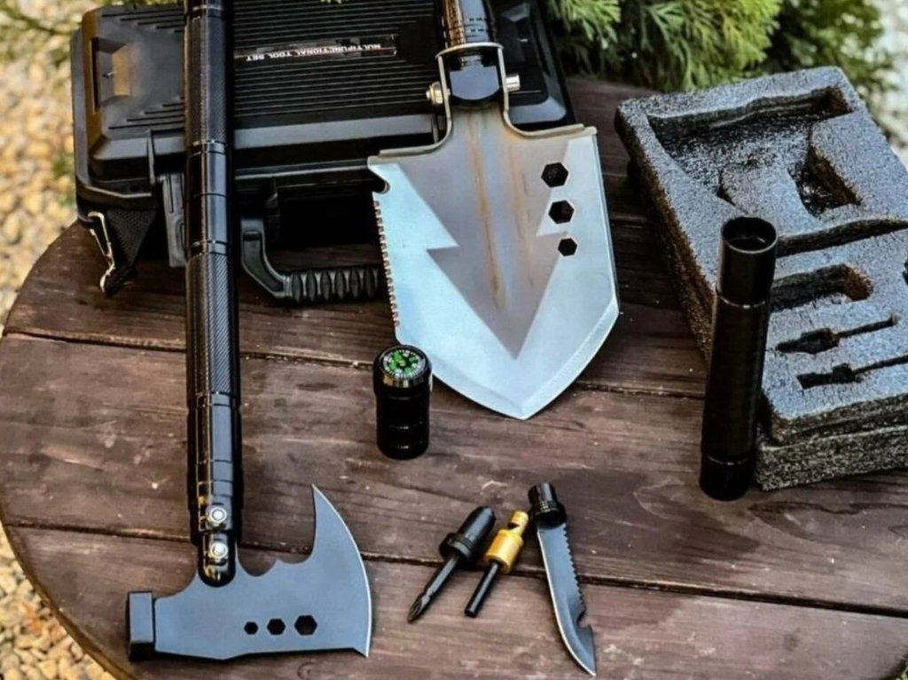7. Туристический набор с разборной лопатой и топором