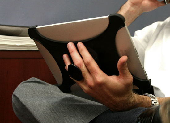 Споры по поводу того, как всё-таки удобнее держать iPad, не утихают даже спустя пол года после выхода планшетника. Может быть держать его двумя руками в горизонтальном положении или плашмя положить на ладонь и набирать текст другой рукой? На самом деле удобный вариант обращения с iДевайсом каждый для себя найдет сам. Если же вы не справляетесь, обратитесь к производителям аксессуаров. Например, малоизвестная компания FreeOneHand предлагает достаточно удобную одёжку для iPad.