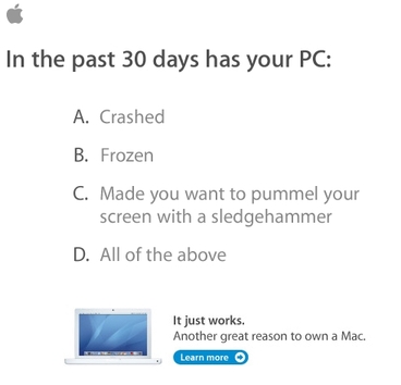 Но одно дело — цифры и аналитика, и другое — очевидные факты. Заметили, что в наши с вами дома, офисы и сумки стали чаще заглядывать продукты Apple? Всё большее количество людей пробуют в деле плоды философии компании. Как в той легендарной рекламе чипсов Pringles: «Попробовав раз — ем и сейчас». Сколько ваших друзей и знакомых перешли на Mac за последние два-три года? [cultofmac]