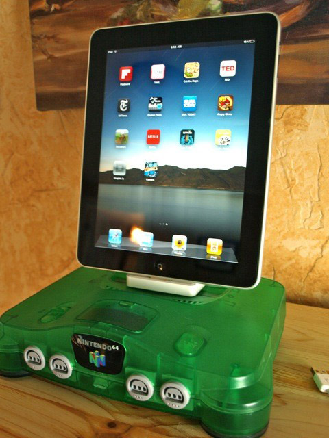 Вы помните свои детские годы? Далекие хиты того времени до сих пор заставляют ностальгировать огромное количество людей, вспоминая игры, например EarthWorm Jim. Только сейчас их переиздания можно купить в App Store и пройти на маленьком телефоне, а вот приставки, некогда предназначавшиеся для их запуска, у многих пылятся на антресолях. Но как оказалось, консоли минувших дней могут еще послужить. В данном случае, в качестве док-станций для ваших портативных устройств от Apple. Например, умельцы с сайта Etsy вмонтировали кабель синхронизации в геймпад от Super Nintendo и в саму приставку Nintendo 64.