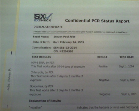 Среди архивов скандального сайта WikiLeaks обнаружен интересный документ с результатами анализов проверки на ВИЧ Стива Джобса.