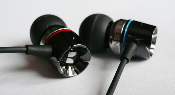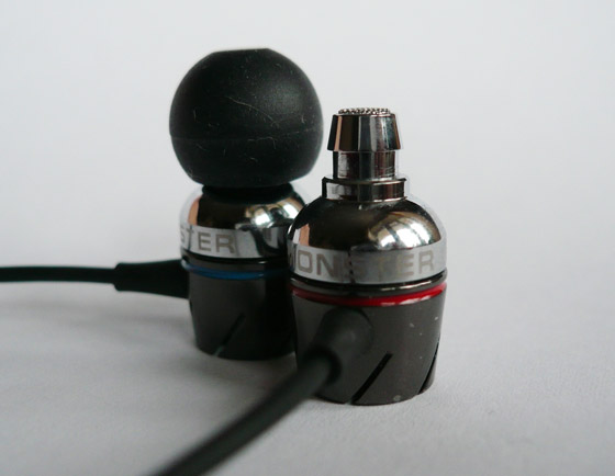 Сами «турбинки» сделаны не менее привлекательно, чем упаковка. Дизайнеры старались, хорошо выдерживая стилистику имиджевого продукта. Наушники выполнены из металла и довольно тяжеловесны. В одном из рекламных роликов модель Monster Jamz пытались разбить молотком и этого сделать не удалось. Правда, смысла в таких действиях нет никакого, но вы можете быть уверены, что если случайно наступите на свои наушники, вдруг оказавшиеся на полу – они не сломаются :-) Провода из мягкой резины приятны. При хождении микрофонного эффекта не наблюдается, а кабель не замерзает на морозе, как это случается с Sennheiser.