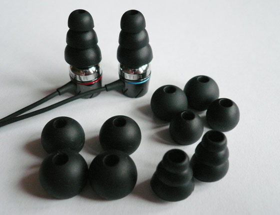 В комплекте идут 2 довольно миловидных чехольчика. В них удобно хранить наушники, чтобы не поцарапать их или ими другие предметы. Насадок положили целых 6 пар, из которых 4 выполнены в виде обычных куполов, а 2 пары — трехлепестковые. Наушники плотно сидят в ухе и звукоизоляция крайне неплохая. Пока лучше мне встречать не доводилось. Но вот уши немного устают. К выбору насадок стоит отнестись внимательно, иначе вы будете получать постоянный дискомфорт.