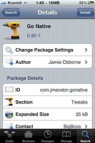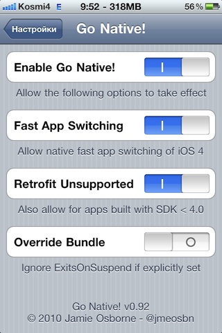 Конечно, авторы этого твика не могли проверить весь софт, это придется сделать вам. Например, WinterBoard, утилита для кастомизации меню iГаджета, обзавелась поддержкой этой полезной функции, а вот Сydia отказалась работать в фоновом режиме. Go Native предназначается только для тех девайсов, где купертиновцы реализовали многозадачность. Найти маленькую программку можно в репозитории BigBoss.