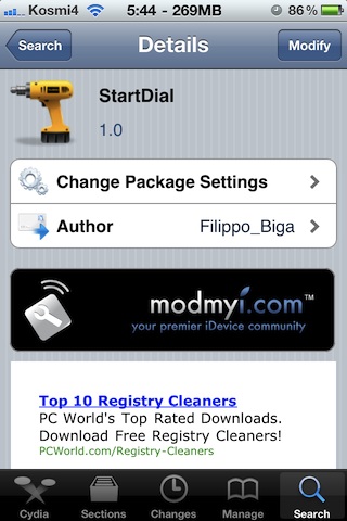 StartDial — программа для самых ленивых. Благодаря ей ваше приложение Phone.app будет всегда открываться на телефонной клавиатуре. Даже если вы его откроете и перейдете, к примеру, в Контакты или Последние вызовы, при следующем открытии «звонилки» вы всё равно увидите привычные цифры. Бесплатная софтина доступна в репозитории ModMyi абсолютно безвозмездно.