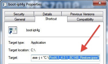 Для iPod touch 2G и iPhone 3GS со старым бутромом необходимо указать следующее (на примере последнего):