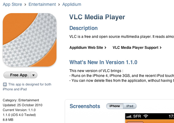 Один из родоначальников проекта VLC, Реми Денис-Курмонт, подал жалобу в Apple о несоответствии лицензии, по которой распространяется open-source проект с условиями продажи в яблочном магазине. Естественно, в Купертино не захотели видоизменять свои правила и VLC Media Player просто удалили, о чем и сообщил вчера Реми в блоге организации VideoLan.