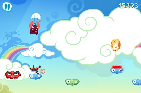 Платформы имеют разные свойства, уже знакомые нам как по Doodle Jump, так и по его многочисленным клонам. К примеру, одни отправляют зверушку в долгий вертикальный полёт, а другие норовят лопнуть под лапами после «визита» массивного главного героя. Есть и откровенно неприятные сюрпризы, вроде ммм… мышей? Да, в мире Clumsy Bob мыши питаются слонами. Вероятное происхождение радуги на одном из уровней оставим без комментариев.