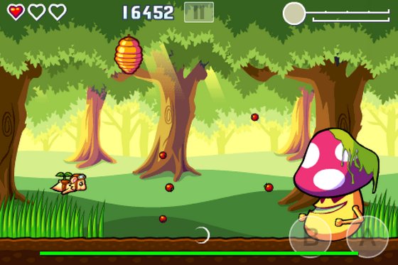Теперь давайте о минусах. Дело в том, что Flying Hamster разрабатывался в том числе и для PSP, и даже для PS3. Разработчики явно больше думали о версиях для платформ Sony. Например, случайный выход из игры (даже через меню) полностью сбрасывает наш прогресс, и приходится начинать заново с самого первого уровня. С учётом того, что жизней постоянно не хватает, такое поведение приложения серьёзно портит настроение игроку.