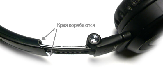 Мне не понравилось, что клавиши управления расположены на левом ухе, а не на правом – для правшей. Когда наушники подключены к телефону, но в них ничего не играет, то слышен слабый «белый шум». Удивляют острые края на краях дуги (см. фото ниже).