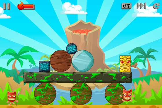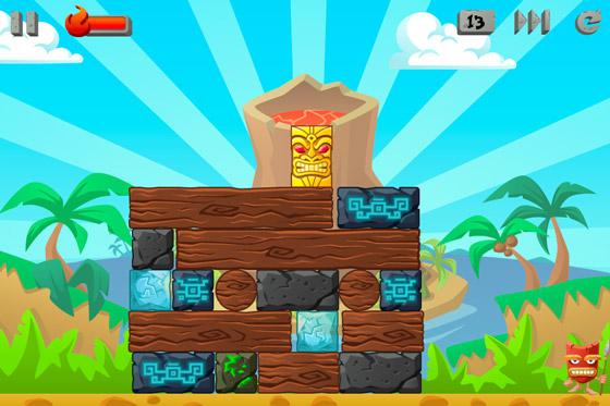 Блоки, из которых состоят разнообразные конструкции, немного напоминающие таковые в Angry Birds, бывают деревянными, стеклянными, каменными и магическими. Тапом по экрану вы можете сжечь те, что из дерева. При этом вся баррикада физически правильно среагирует на отсутствие одного или нескольких опорных элементов. Стеклянные блоки разрушаются при ударе, а магические при соприкосновении друг с другом. Порой, придётся приложить немало смекалки, что магический тотем не свалился во время очередной встряски.