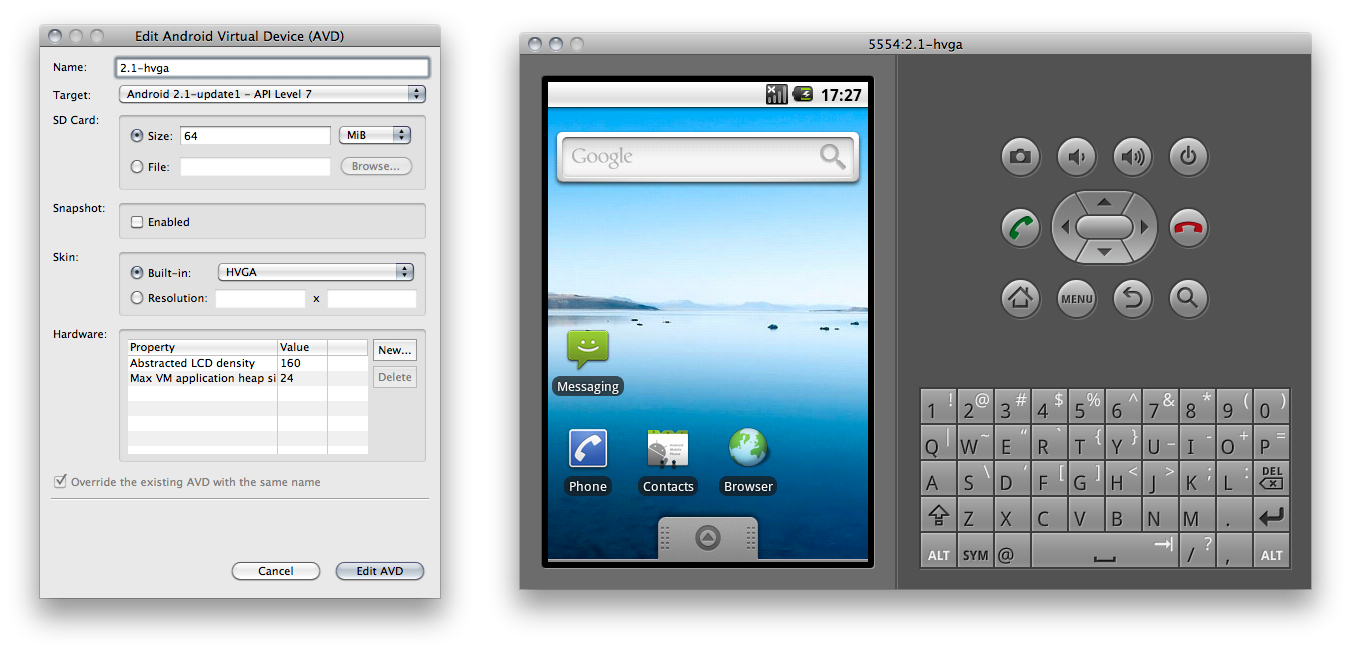 Эмулятор Android воспроизводит аппаратные средства устройств, в нём выполняется настоящая, практически полноценная система. Приложения, собранные для эмулятора, можно без пересборки устанавливать на «живые» устройства. Эмулятор Android в большинстве случаев работает медленнее, чем настоящее устройство, и довольно часто можно приятно удивиться повышению скорости работы приложения после установки на устройство.