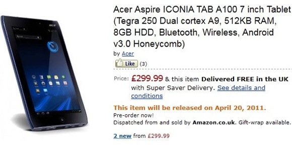 Устройство построено на базе системы на чипе NVIDIA Tegra 2, оснащается 512 МБ оперативной памяти, 8 ГБ флэш-памяти, слотом microSD, модулями Wi-Fi и Bluetooth. Позорное описание Amazon с указанными 512 КБ RAM и 8-гигабайтным HDD — это ошибка сотрудников торговой компании. К сожалению, пока не ясно, будет ли в базовой модели 3G-модем. Точно известно, что такая опция существует, но если она окажется в планшете за $480, то Iconia Tab A100 окажется одним из наиболее выгодных Android-планшетов на рынке.