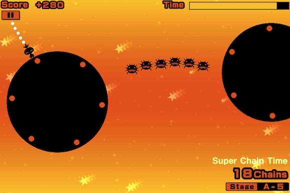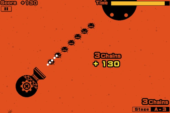 В игре есть три режима. Normal Mode представляет собой обычное прохождение без каких-либо ограничений. Спокойно себе прыгаем, рассекаем на части зубастых противников и продвигаемся вперед. Со временем скорость вращения планет будет увеличиваться, а их размеры уменьшаться — это усложняет игру. Если вы упадете, все придется начинать сначала. Второй режим Super Chain почти такой же, как и первый, но отличается увеличенной скоростью и ограничением по времени.
