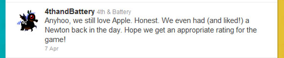Мы все еще любим Apple. Честно. У нас даже недавно был Ньютон (Apple Newton – прим.автора) и нам он нравился. Надеемся получить соответствующий рейтинг своей игре.