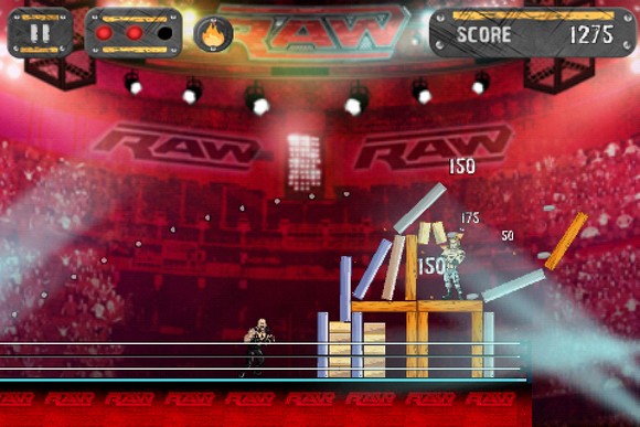 На то, чтобы пробиться сквозь ряды препятствий, у нас есть всего три попытки. Ускорить и облегчить процесс прохождения призвано кратковременное превращение реслера в… горящего реслера. Замысел разработчиков остался секретом: нам не удалось отметить какого-либо заметного эффекта от использования этой возможности. Зато мы не могли не отметить довольно-таки посредственную физику и совершенно не впечатляющую анимацию.