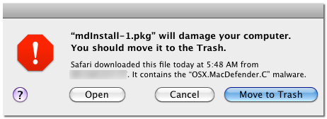 Однако к вечеру Apple уже приструнила эволюционировавшую версию программы. Установочный файл Mdinstall.pkg был автоматически занесён в число вредоносных благодаря оперативному обновлению «чёрного списка», с которым сверяется Finder при открытии файлов, скачанных с Интернета. Скорее всего, хакеры уже работают над усовершенствованной версией установщика, которую Finder не обнаружит. Только работать она будет вплоть до следующего обновления механизма проверки файлов. [ai]