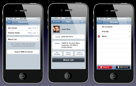 Очень не хватает в iPhone черного списка в контактах. Ведь бывают ситуации, когда хотелось бы кое-кого заблокировать. В iOS 5 такая функциональность не помешает. В черный список можно добавить человека прямо из его карточки в адресной книге, либо поместить туда целую группу контактов. Опции черного списка будут синхронизироваться с iTunes.