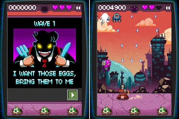 Заградительные барьеры превратили в… яйца и поместили в нижнюю часть игрового поля. Наша задача — не дать врагам забрать яйца и по возможности предотвращать эти попытки шквальным огнём. Помимо выводка, следует следить и за направлением огня противника, в особенности при большом скоплении супостатов на экране. Решать две задачи не очень легко. Особенно во время битв с боссами, норовящими раздавить динозавра-терминатора.