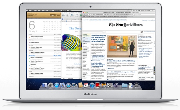 Теперь перейдем к наиболее интересным нововведениям, большинство из которых фактически перекочевали из iOS. Например, функция запуска программ в полноэкранном режиме. Пользователи Windows сейчас, вероятно, улыбаются, отмечая про себя, что такой режим изначально был реализован в ОС от Microsoft. Но вариант Apple несколько отличается. Во-первых, когда программа занимает весь экран, то она не просто растягивается, но меняется интерфейс приложения, наиболее эффективно занимая рабочее пространство дисплея. То есть, разработчикам придется адаптировать свои программы для такого режима работы, создавать соответствующий интерфейс, но результат будет положительным. Собственные приложения Apple, естественно, оснастила новой функцией, сделав работу с ними намного приятнее и удобнее. Особенно на небольшом экране 11,6-дюймового Air. К тому же, запуская программу на весь экран, можно легко сосредоточиться на текущей задаче. Для активации полноэкранного режима достаточно нажать на соответствующий значок в правом верхнем углу окна программы. Аналогично она переводится в оконный режим.
