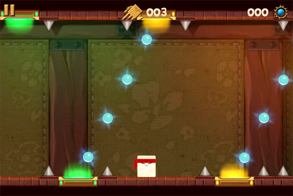 Вокруг, конечно же, полно препятствий, резаков, шипов и т.п. Вообще, в плане разнообразия элементов на уровнях игрушка только радует. Здесь вы встретите вращающиеся платформы, скользкие стены, упругие металлические поверхности, порталы и многое другое. Правда, ближе к концу To-Fu: The Trials of Chi всё же начинает повторять саму себя, да и к элементам привыкаешь. Зато игра с лихвой компенсирует это самим количеством уровней, их тут ровно одна сотня. Другим разработчикам стоит брать пример.
