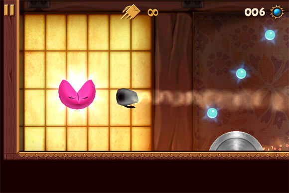 Геймплей здесь состоит в том, чтобы хватать пальцем маленького белого То-Фу, оттягивать его в нужном направлении и запускать в полет. Летит главный герой строго по прямой, элемента физики здесь нет. Достигнув какой-нибудь поверхности, То-Фу крепко за нее уцепляется и сидит в ожидании следующего прыжка. Цель — добраться до розовой “Кошки Удачи” (ох уж эти японцы).