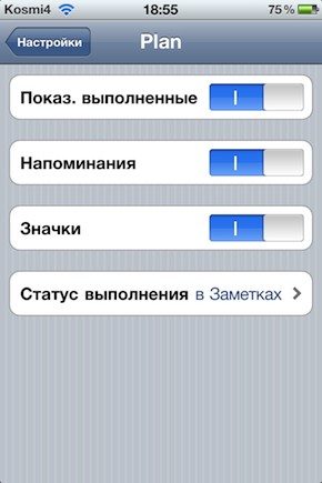 Если событие уже прошло, его можно отметить «птичкой» прямо из сообщения. В Настройках (Settings.app) можно включить-отключить отображение напоминалок (без них Plan превратится в обычный ToDo-шник) и выполненных задач.