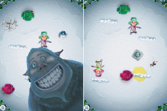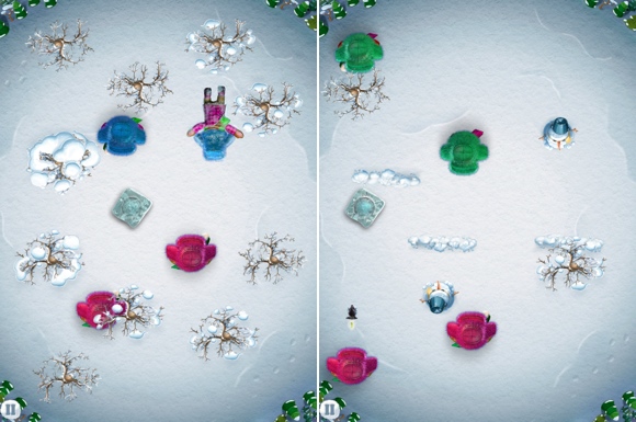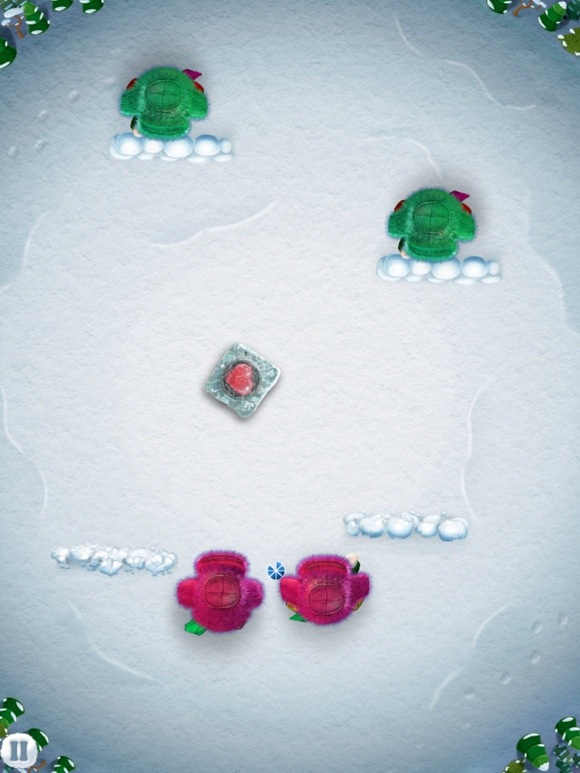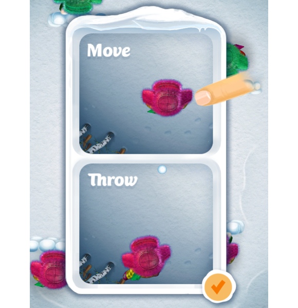 Управление реализовано довольно просто, но не очень интуитивно, хотя встроенная в игру подсказка все расставит на свои места. Справедливости ради отмечу, что по-другому в данном случае схему взаимодействия с персонажами и не реализовать. Для движения бойца достаточно толкнуть его пальцем в нужную сторону, для того, чтобы швырнуть снежок — провести линию от «ушастой» шапки в нужную сторону.