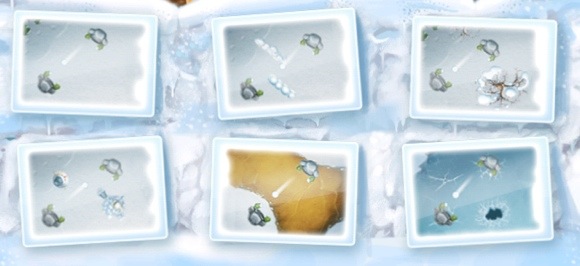 Еще одна пара презабавнейших этапов заставляют напрячься по-настоящему. В одном из них снег есть не на всем поле, а лишь по четырем углам. На голой земле снежок не слепить, и в итоге игроки оказываются сильно ограниченными в движениях. Второе поле представляет собой тонкую корку льда на реке или озере. Если стоять на одном месте, боец провалится под лед. Приходится быстро двигаться и яростно метать снежки.