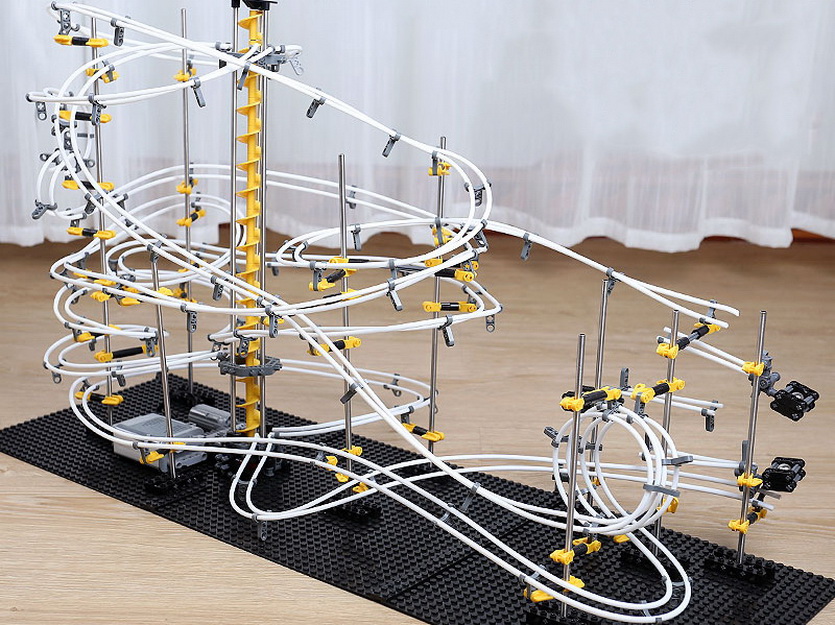 Многоуровневая дорога для шарика на базе гибких элементов и LEGO-блоков. Доступно 4 варианта сложности по разной цене.