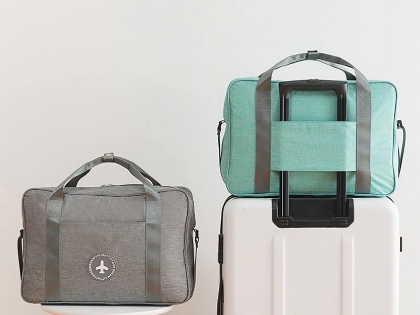 Скромная дорожная сумка для хранения одежды, белья и не самых ценных вещей с креплением на ручку чемодана.