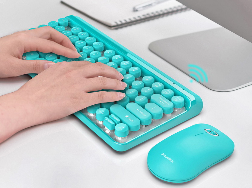 Компактный беспроводной комплект из мыши и клавиатуры в стиле традиционной механической печатной машинки. Есть в нескольких цветовых исполнениях.