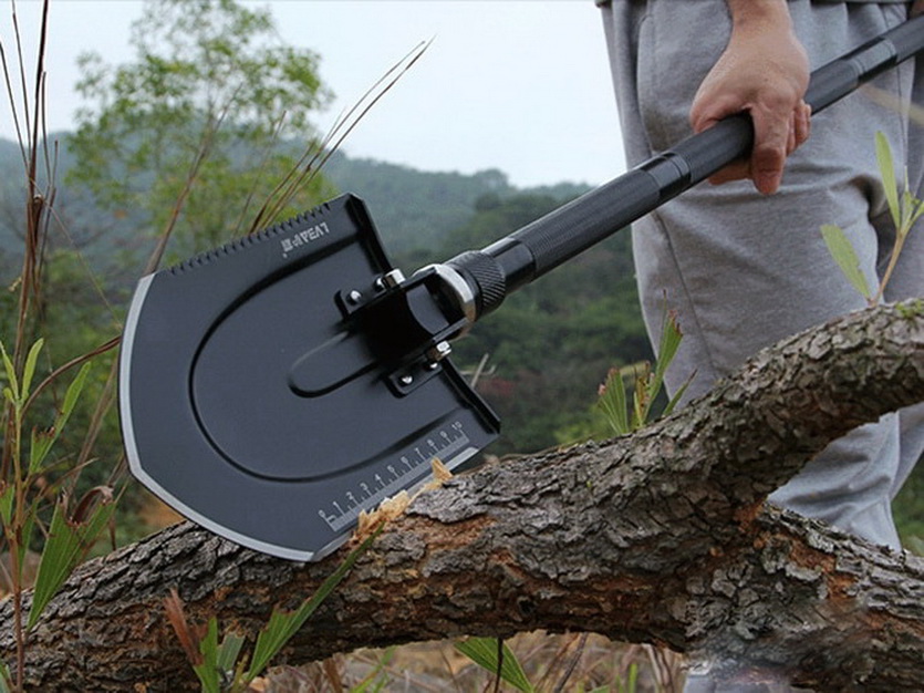 Благодаря им 97-сантиметровая лопата с пилой на одном краю и линейкой на другом превращается в копье, отвертку, пилу-клевец, нож или пробойник.