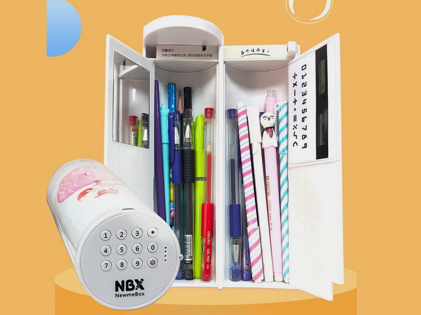 Интересный вариант школьного пенала с кодовым замком на торце и удобной организацией внутреннего пространства с зарядкой от USB.