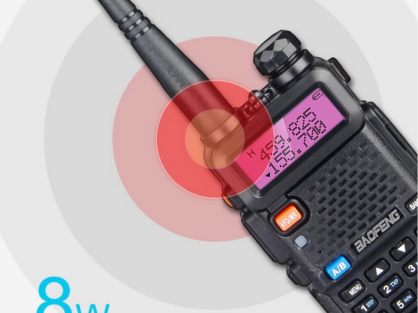 Переносная СВЧ/УВЧ-радиостанция с повышенной до 8 Вт мощностью и дальностью работы до 10 километров. Отличный выбор, дешёво и сердито.