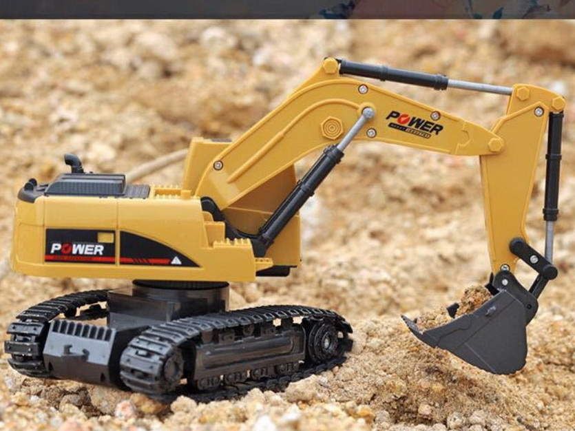 Управляемая с помощью игрового шестиканального пульта «модель» строительного экскаватора в масштабе 1:24.
