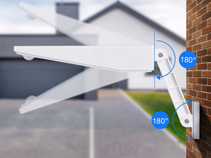 Регулировка яркости осуществляется в 4 дискретных режимах. Кронштейн так же предлагает дискретную установку под несколькими углами. Не боится воды и пыли.