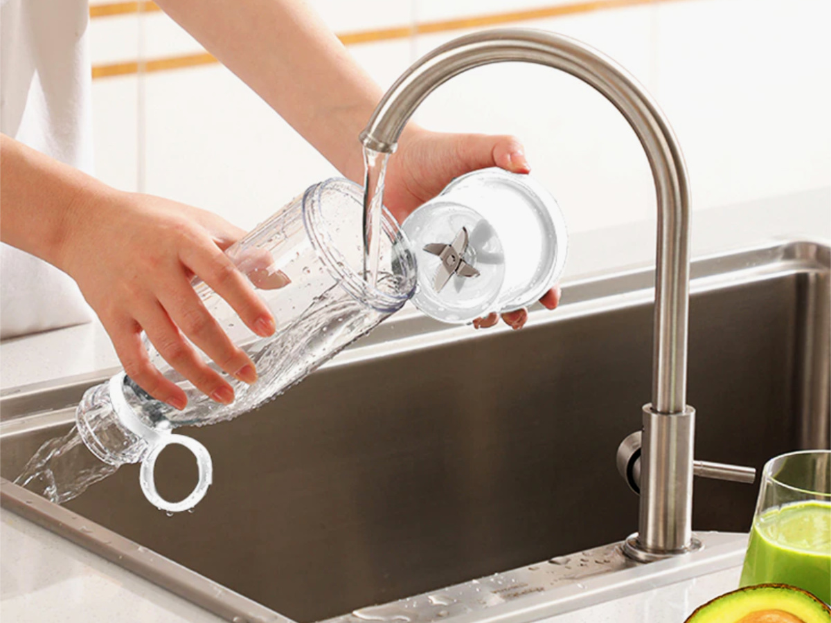 Бутылка полностью разбирается, поэтому её очень удобно мыть под проточной водой.