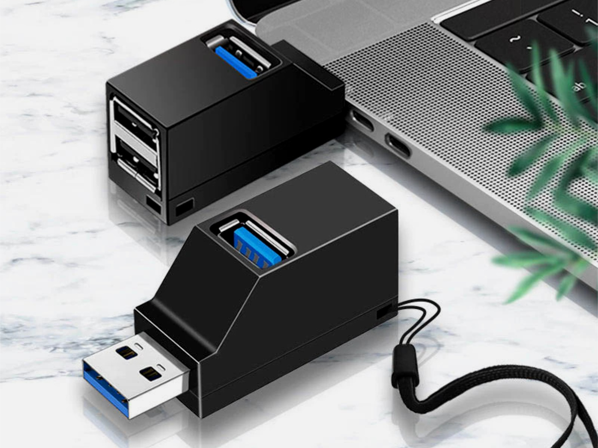 Компактный хаб, который устанавливается в порт USB-A (желательно 3.0) компьютера и даёт возможность подключить по USB-A сразу три устройства (два по 2.0 и один по 3.0).
