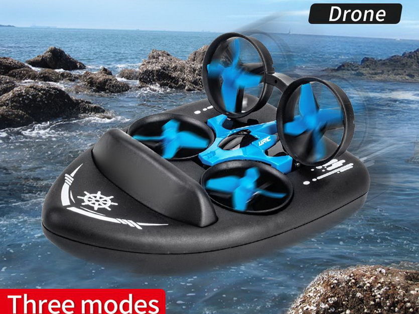 Лодка-квадрокоптер – крайне оригинальная идея. В основе лежит стандартный наладонный беспилотник JJRC с временем полета 5-7 минут.