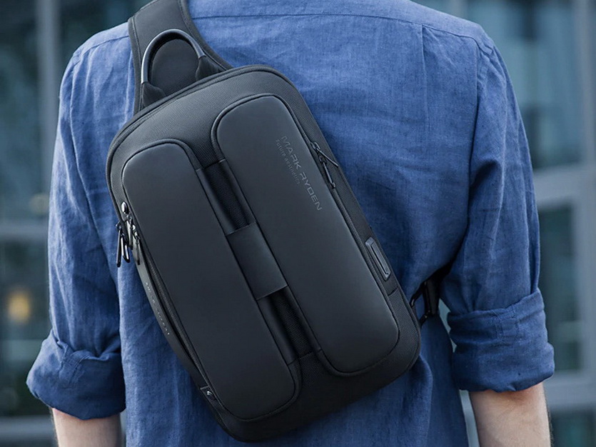 Интересный вариант однолямочной сумки-слинга для повседневной носки в стиле «унисекс». Предназначена для переноса крупногабаритного планшета а-ля iPad Pro 10.