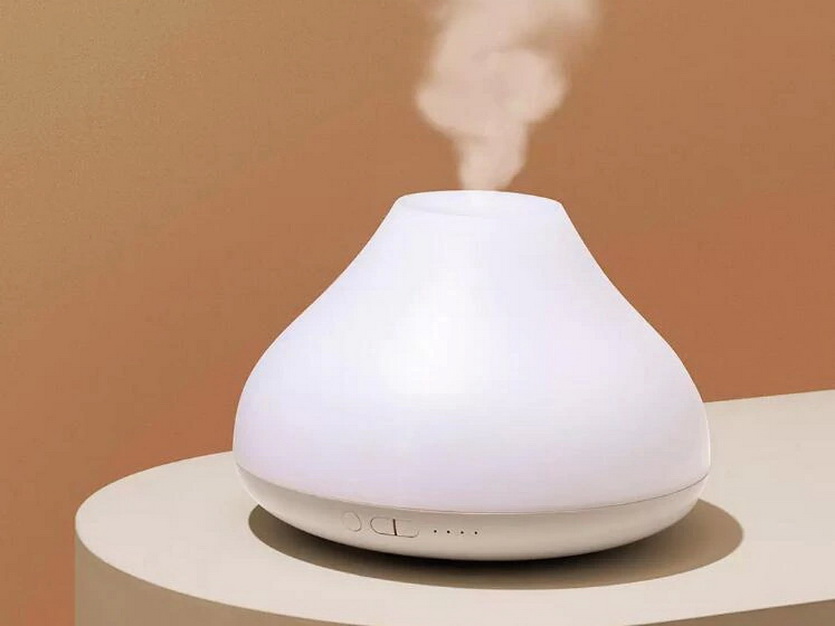 Компактный аккумуляторный увлажнитель воздуха с ёмкостью для жидкости на 500 миллилитров. Может использовать в том числе ароматизированную маслами воду.