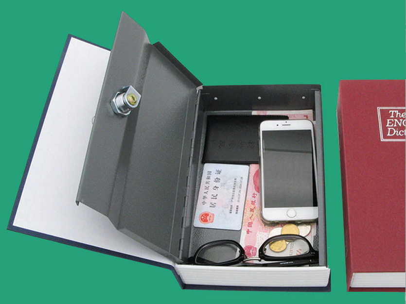 Под ней прячется полноценная металлическая огнеупорная коробка с ключом. Хватит не только для хранения заначки, но и для ценных вещей.