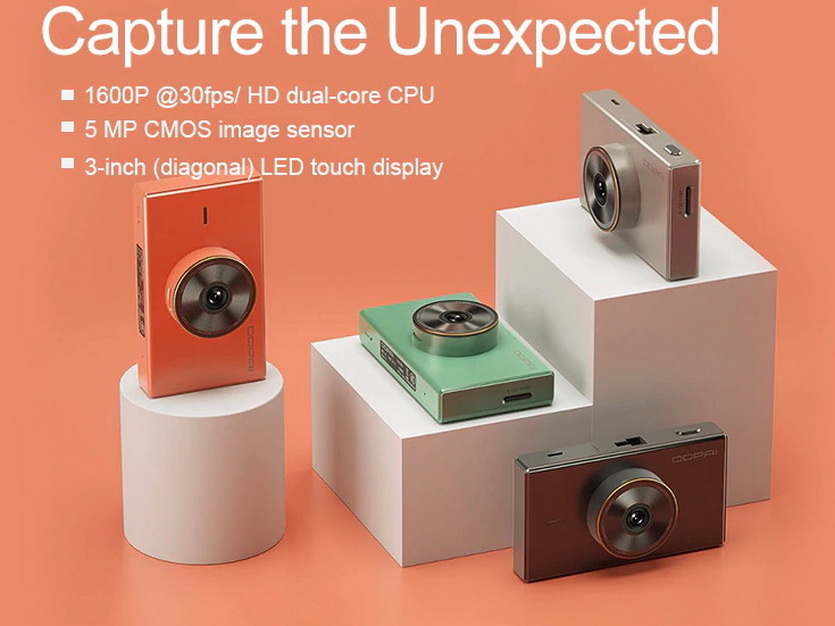 Новый видеорегистратор от партнерского бренда Xiaomi. Основная фишка — стильный внешний вид и яркий металлический корпус, который не стыдно поставить даже в очень дорогой машине.