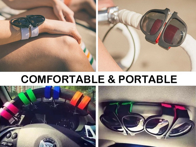 Удивительные складные солнцезащитные (линзы поляризованные UV400, а не крашеные) очки с гибкими дужками, которые можно носить на руке — или где угодно.