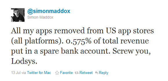 Саймон Маддок (Simon Maddox) разработчик таких приложений как iSimples, 0870, Nike Football+ Presents: Master Control, GoSpoken Audiobooks, Lonely Planet Live и других, на истекшей неделе написал в twitter: