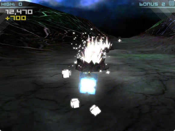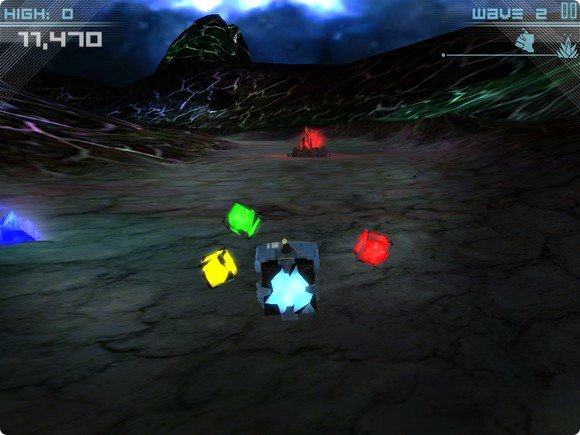 Сложно понять, что именно здесь является главным героем. Синий куб мчится по пересечённой местности на далёкой и никому неизвестной планете. Вокруг него пассивные летают другие, более маленькие разноцветные кубы. Наша задача состоит в кормлении этих маленьких паразитов энергией, хранящейся в цветных кристаллах, поднимающихся на поверхность земли.