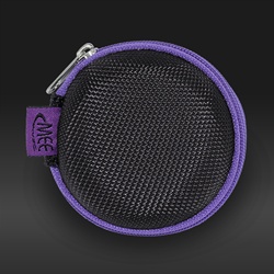 Стоит отметить также особенный чехол в комплекте. Не знаю, насколько фото передаст его эстетику, но чехол еще круче, чем рассмотренные выше. В отличие от стандартного, которым снабжаются все остальные наушники МЕЕ, этот чехол меньше по размеру, толще, тверже. Он выполнен из такой плетеной твердой ткани, черно-фиолетовый, в то время как стандартный – черный дермантиновый, и немного больше.
