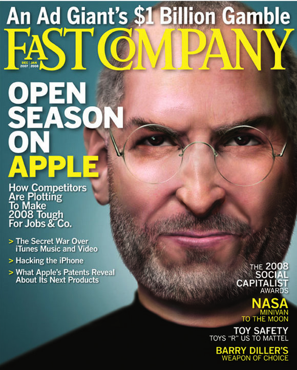 Долгое время Стив Джобс контролировал каждое свое фотопоявление в СМИ и просил, чтобы его изображали с последним техническим детищем. Именно поэтому многие из лучших обложек – это иллюстрации с его участием.